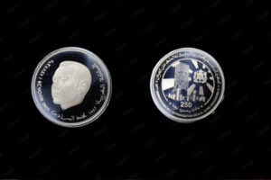 كما يبرز على وجه العملة التذكارية تصميم فني لصومعة حسان، أحد المعالم التاريخية للعاصمة الرباط، إلى جانب شعار المملكة المغربية، وقيمة العملة بالأرقام “250” وبالحروف “مائتان وخمسون درهماً”.