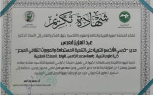 هذا التكريم جرى في إطار فعاليات “المنتدى العربي الثاني لشبكات المدارس والنوادي والكراسي العلمية المنتسبة للألكسو”، الذي عُقد تحت شعار «تخضير التعليم في إطار خطة التنمية المستدامة 2030». وقد شهد المنتدى مشاركة واسعة من نخبة من الأكاديميين، الخبراء، وصناع القرار التربوي من مختلف الدول العربية، الذين إجتمعوا لمناقشة آفاق التعليم في ظل التحديات البيئية والتنموية.